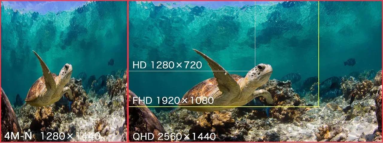 Rezolutia verticala a lui 4M-N este mai mare decat a lui 1080p, iar cea verticala este mai mica decat a lui 1080p, dar din punctul de vedere al extinderii unghiului vizual 4M-N va fi mai bun decat 1080P.