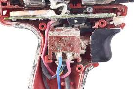 | Intrerupatoare Toate sculele electrice sint controlate de un intrerupator. Punerea in functiune a unei scule se face prin actionarea intrerupatorului, care poate avea forma unui tragaci, derulator sau unui buton de ON/OFF care in unele cazuri e blocat in pozitia de ON sau de OFF. Problemele de scurta durata cu intrerupatoarele au, de regula, legatura cu avarierea mecanismului de actionare sau de blocare, ca urmare a caderii sculelor. Alte probleme premature pot fi cauzate de fixarea proasta a intrerupatorului, adica suruburile nu sint strinse suficient sau sint strinse in exces si taie firul. Pe termen lung, intrerupatoarele se pot bloca din cauza infiltrarii de praf de lemn sau ciment. in cazuri extreme praful poate afecta conexiunile interne ale intrerupatorului, cauzind arderea contactelor si conducand la o functionare neintrerupta a sculei. |